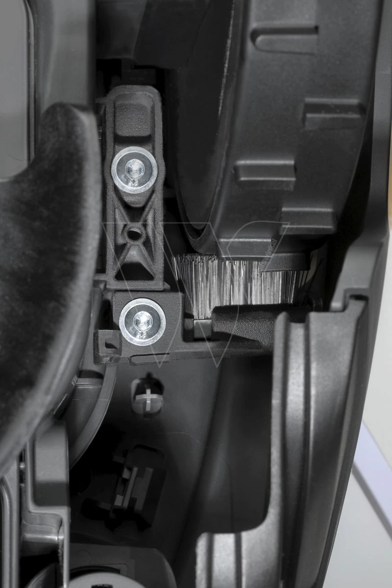 Vooral bij natte omstandigheden houden de gemakkelijk te monteren wielborstels de wielen van de SILENO city schoon van gras en vuil.