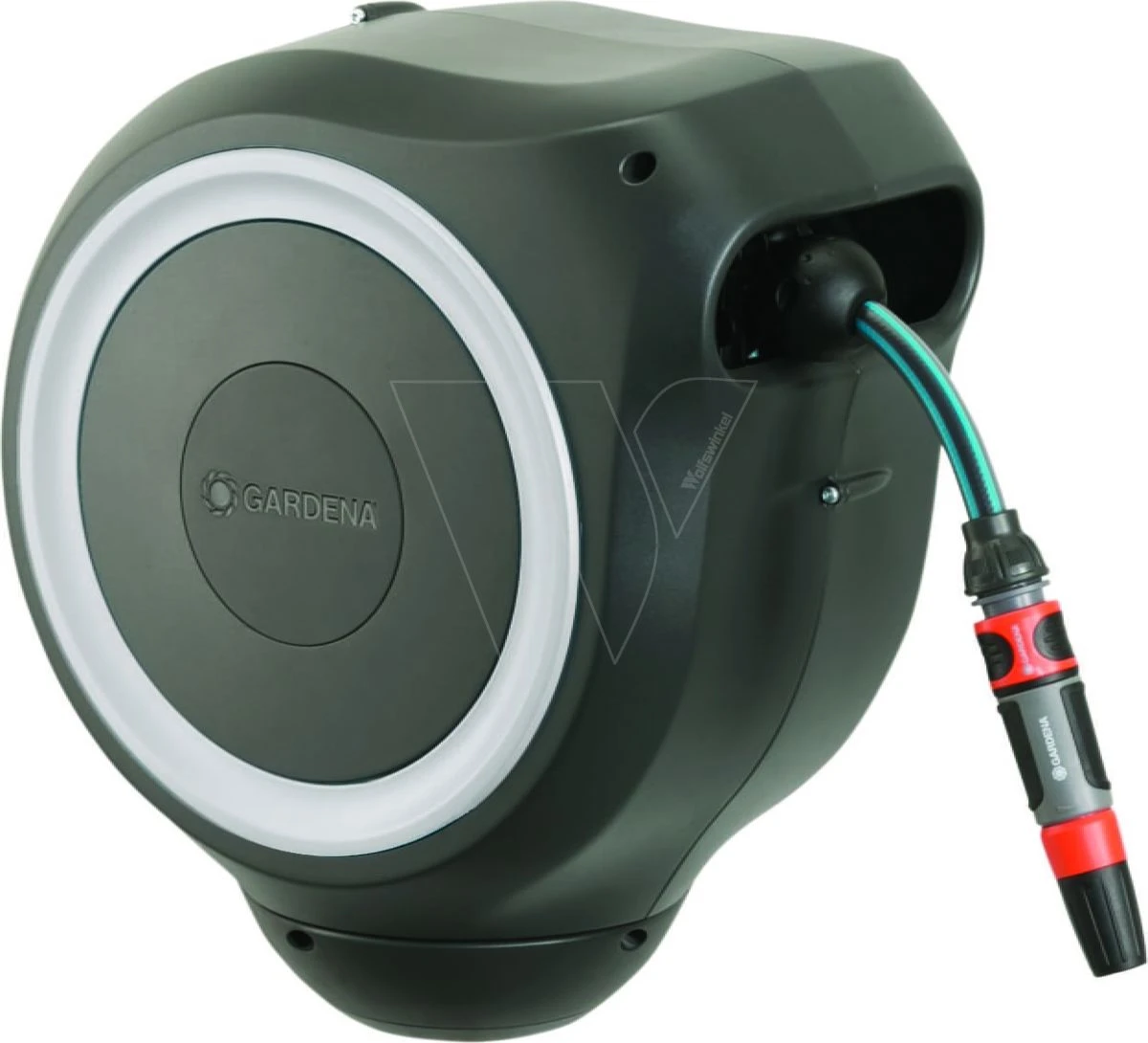 Door lichtjes aan het uiteinde van de slang te trekken, wordt de vergrendeling ontgrendeld en een ingebouwde stalen veer met innovatieve RollControl-technologie zorgt voor soepel en gecontroleerd oprollen. De RollControl beschermt de slangenbox en de omgeving tegen schade als gevolg van het te snel inrollen. Om knikken of knopen in de slang te voorkomen, heeft de box een geïntegreerde slanggeleider. Dankzij de slang- en kraanaansluitingen van het Original GARDENA System kunt u eenvoudig en flexibel een verlengstuk of ander compatibel GARDENA element op de slang aansluiten.